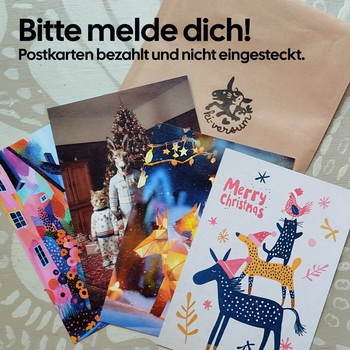 Auf der Tausendschön hat eine Frau diese Postkarten bei mir gekauft, bezahlt und dann nicht eingesteckt. Es war etwas Trubel am Stand. Ich bin dir noch gefolgt, konnte dich aber nicht mehr